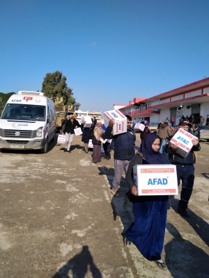 SUDKOM koordinasyonunda AFAD tarafından organize edilen insani yardımlar kapsamında, 2019’un son günü, AFAD tarafından temin edilen 150 gıda kolisi ve 150 hijyen seti ile Kızılay tarafından temin edilen 150 gıda kolisi, 150 hijyen seti, 150 oyuncak, 150 kutu helva ve 4050 paket süt, her iki kuruluşun görevlendirdiği personeller tarafından ilçe halkına dağıtıldı.