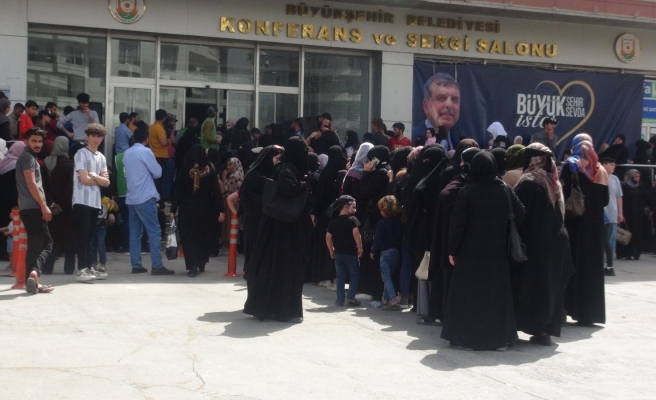 Şanlıurfa’da bulanan Suriyelilere bir yardım kuruluşu tarafından Ramazan Bayramı öncesi 500 ile 2 bin lira arasında nakdi yardım yapıldı. Aile ve hane sayısına göre belirlenen yardımdan yararlanmak isteyen Suriyeliler, Büyükşehir Belediyesi Konferans Salonu önünde ve içerisinde uzun kuyruklar oluşturdu. Kuyrukta bekleyen Suriyeliler zaman zaman aralarında tartışma yaşadı.