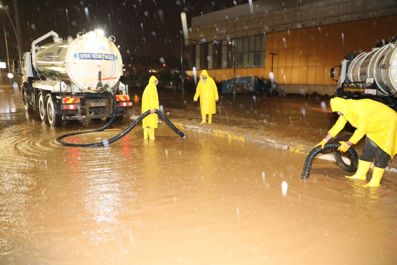Kentin birçok noktasında vidanjör yardımıyla yapılan çalışmalarda tıkanan rögarlar temizlendi. Gece geç saatlerden sabahın ilk ışıklarına kadar süren çalışmalarda ekipler büyük bir çaba gösterdi.