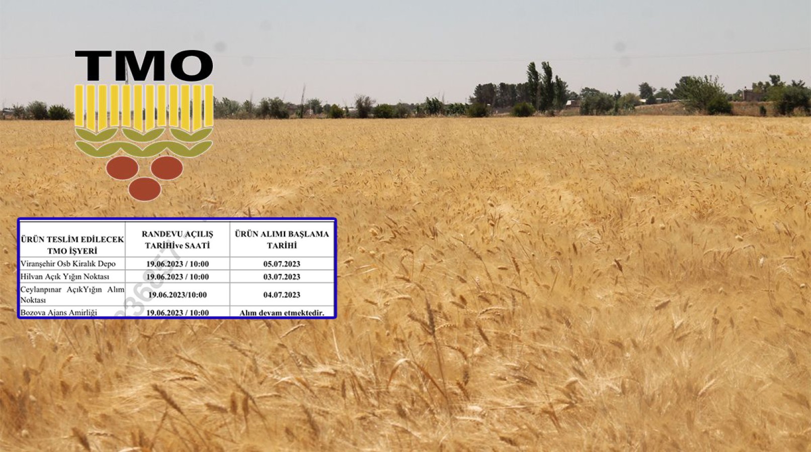 alım noktası ve Bozova ajans amirliği için randevu açılış tarihi ve saati 19