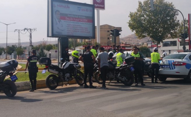 Öğlen saatlerinde Akçakale Caddesi üzerinde bekleyen trafik ekipleri, buradan geçen motosikletleri durdurdu.
