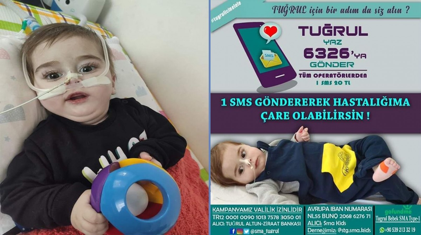 Yardımseverler minik Tuğrul'un tedavisine TR12 0001 0090 1013 7578 3050 01 IBAN numaralı hesaba, açıklama kısmına "TUĞRUL" yazarak destek olabilirler.