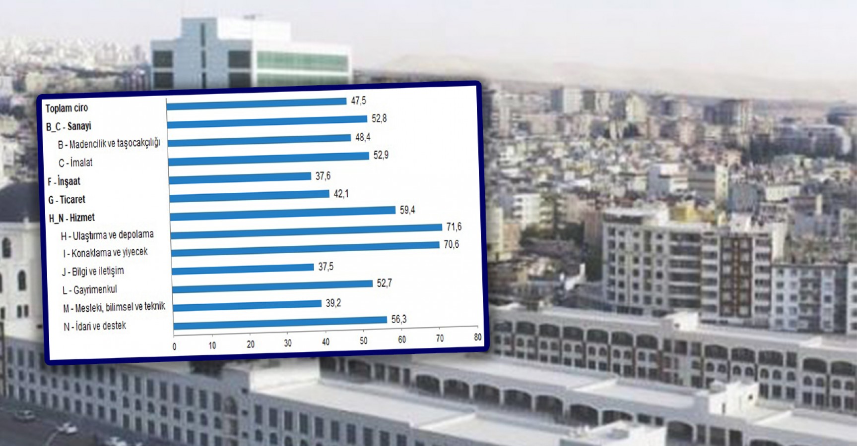Toplam cironun alt detaylarına bakıldığında, ekimde yıllık sanayi sektörü ciro endeksi yüzde 52,8, inşaat ciro endeksi yüzde 37,6, ticaret ciro endeksi yüzde 42,1, hizmet ciro endeksi yüzde 59,4 oldu.