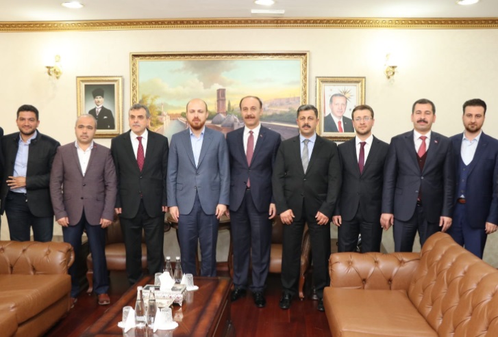 Ziyarette Vali Abdullah Erin'e, Allah lafzı işlenmiş silize bir hat çalışması hediye eden yönetim kurulu başkanı Ömer Faruk Terzi ile kurul üyesi Bilal Erdoğan, daha sonra Vali Erin ve Başkan Beyazgül ile yapılacak çalışmalar için görüşmelerine devam etti.