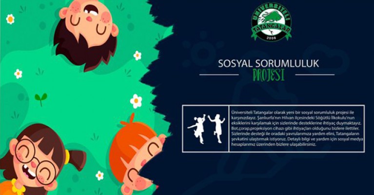 Sosyal Medya Platformu üzerinden başlattıkları projede "Üniversiteli Tatangalar olarak yeni bir sosyal sorumluluk projesi ile karşınızdayız. Şanlıurfa'nın Hilvan ilçesindeki Söğütlü İlkokulu'nun eksiklerini karşılamak için sizlerin de desteklerine ihtiyaç duymaktayız. Bot, çorap, projeksiyon cihazı gibi ihtiyaçları olduğunu bizlere ilettiler. Sizlerin de desteği ile oradaki yavrularımıza yardım elini, Tatangaların şefkatini ulaştırmak istiyoruz. Detaylı bilgi ve yardım için sosyal medya hesaplarımız üzerinden bizlere ulaşabilirsiniz" sözleriyle herkesi desteğe davet etti.