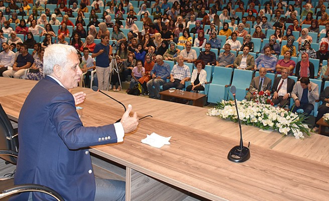 “Davetimizi geri çevirmeyip üniversite öğrencilerimize bugününü ayıran değerli Faruk Saraç Beye teşekkür ediyorum” diyerek sözlerine başlayan Rektör Çelik, öğrencilere yönelik konuşmasında “Üniversite bir taraftan araştırma kaynağı demektir.Üniversite inovasyon, yenilikçilik, girişimcilik demektir.Üniversite toplum sorunlarına çözüm üreten yer demektir. Üniversite aynı zamanda her türlü düşüncenin neşet ettiği bir ortamdır. Üniversite üretmektir ve sizin hayatınızda çok önemli bir yere sahip olan hayal kurmaktır. Üniversite aynı zamanda entelektüel kültür ve birikimi kazanacağınız yerdir.Hayatta başarılı olmanın sırrı bir konuya odaklanmaktır.İster işçi ister sağlık bilimci ister sosyal bilimci ister mühendis ya da doktor olun fark etmiyor.Hayatta başarılı olmanız için mutlaka bir konuya odaklanmanız gerekir ve o konunun köküne inip onu dantel gibi işlemeniz gerekir” dedi.