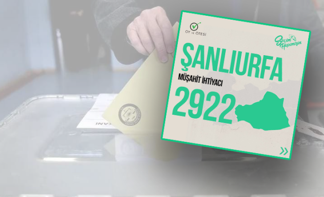 İller bazında ihtiyaç duyulan sandık müşahit sayısını açıklayan Oy ve Ötesi Derneği'nin verilerine göre, Şanlıurfa 28 Mayıs cumhurbaşkanı seçiminde sandık müşahitlerine en çok ihtiyaç duyulan ikinci büyük il oldu. Derneğe göre, Şanlıurfa'da 2 bin 922 sandık müşahidine ihtiyaç var.