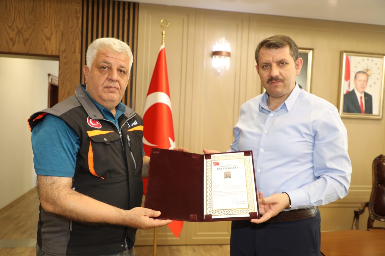 Şanlıurfa Valisi Ayhan, Müdür Sönmez'i makamında ağırladı ve başarı belgesini takdim etti. Yaşanan zorlu süreçlerdeki özverili çalışmaları için Müdür Sönmez'e teşekkür eden Vali Ayhan, emeklilik hayatında kendisine mutluluklar diledi.