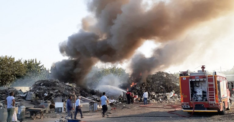 Elindeki bazı ürünleri ateşe veren hurdacının bu hareketi telaşa neden olurken, gökyüzü dumanla kaplandı.