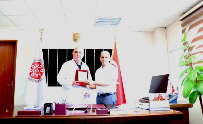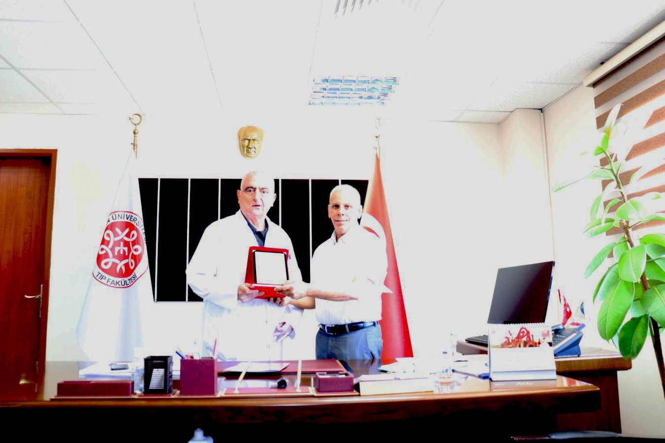 Tıp Fakültesi Dekanı Prof. Dr. Halil Çiftçi, emekliye ayrılan Prof. Dr. Necati Yenice’ye hizmetlerinden dolayı plaket takdim etti.