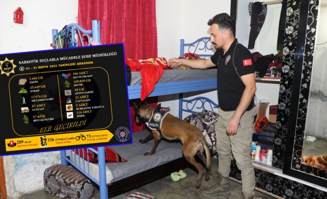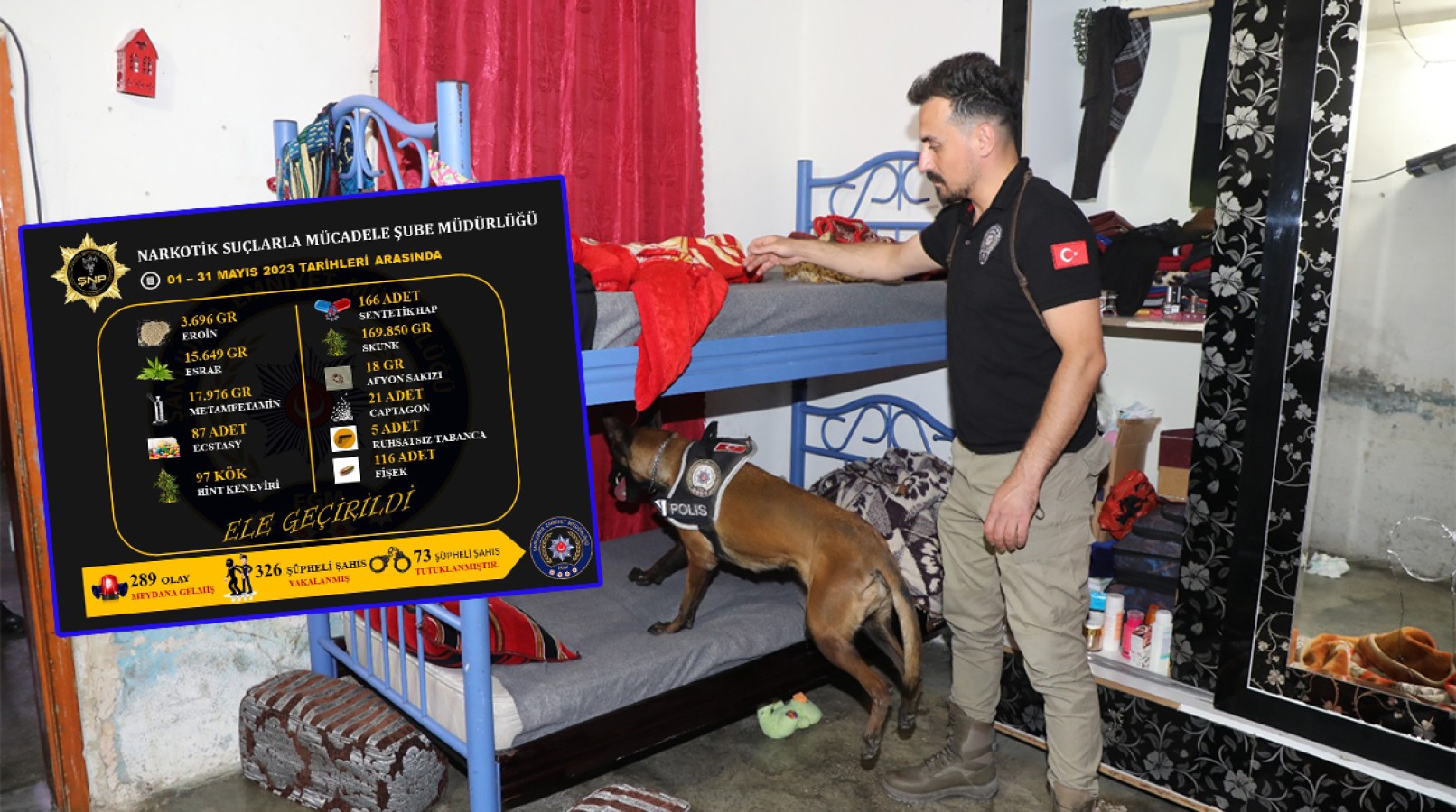 Müdürlüğün sosyal medya hesabından paylaşılan görsele göre, ekiplerce mayıs ayında gerçekleştirilen 289 uyuşturucu operasyonunda 326 kişi gözaltına alındı.