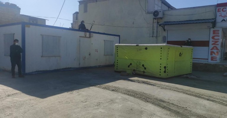 Büyükşehir Belediyesinin yol planında yer alan bölgede 200 metrekare arsası olan ve Emine Arslan isimli kadın buradaki arazisinin üzerine önce konteyner koydu.