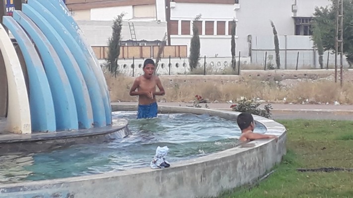 Koronavirüs salgını nedeniyle Ramazan Bayramında sokağa çıkma yasağı ilan edilirken, sıcak havalardan bunalan çocuklar ise kendilerini süs havuzlarına attı.