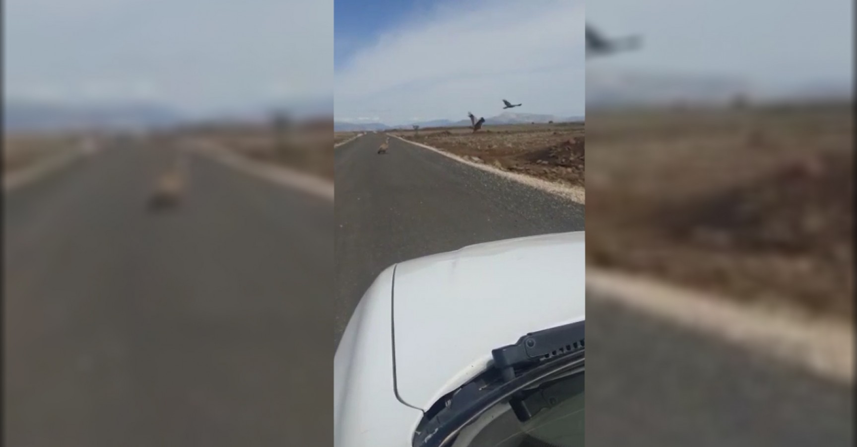 Siverek'te dolu yağışı nedeniyle telef olan sürü, akbabalara yem oldu. Akbabalar sürücüler tarafından kaydedildi.