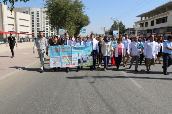 Şanlıurfa İl Sağlık Müdürlüğü tarafından organize edilen yürüyüşe İl Sağlık Müdürü Doç. Dr. Emre Erkuş, hizmet başkanları, başkan yardımcıları, birim sorumluları, hastane yöneticileri, Harran Üniversitesi Sağlık Bilimleri Fakültesi Çocuk Sağlığı ve Hastalıkları Ana Bilim Dalı Başkanı Doç. Doktor Hülya Karataş ve lise ve üniversite öğrencileri katıldı.