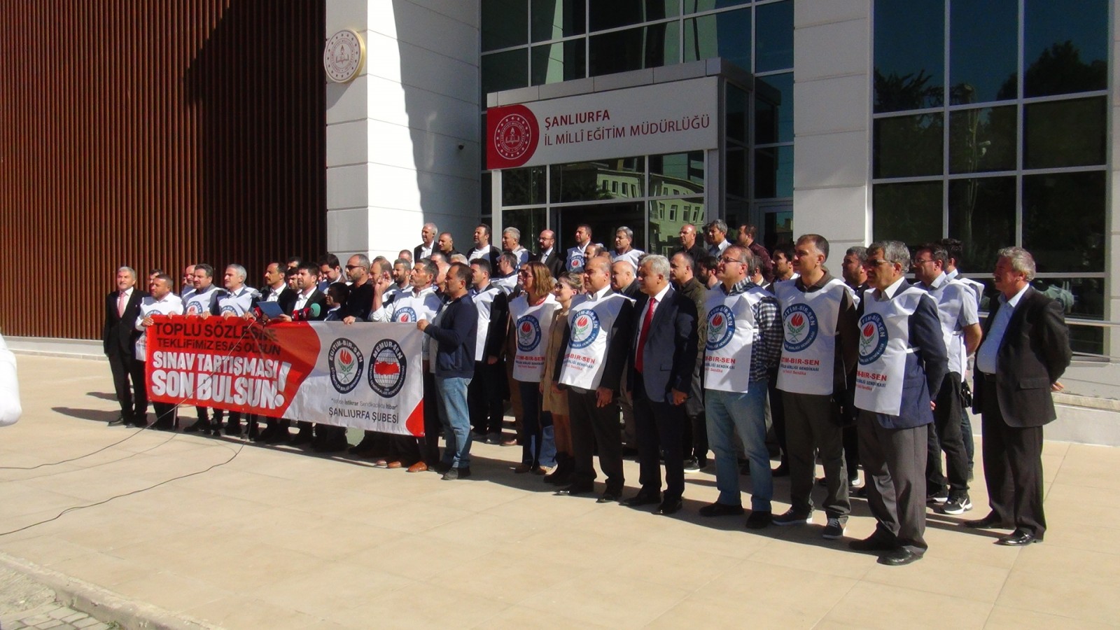 katılırken, açıklamayı grup adına Eğitim-Bir-Sen Şanlıurfa Şube Başkanı İbrahim