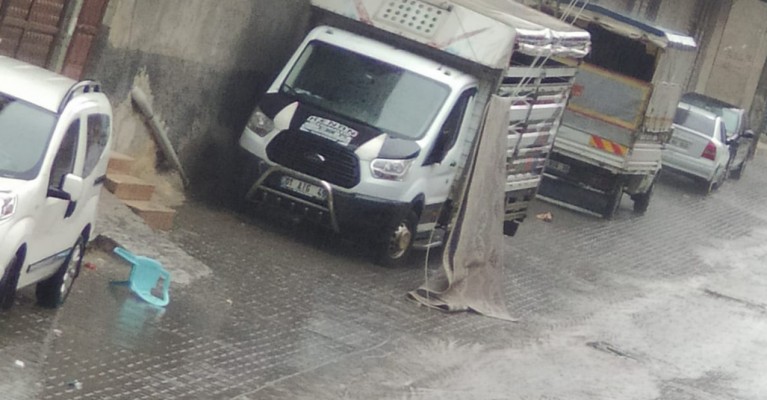 Zaman zaman doluyla birlikte etkili olan yağmur bu kez Eyyübiye İlçesi Süleyman Şah Mahallesi'nde halıların elektrik tellerinin üzerine düşmesine neden oldu.