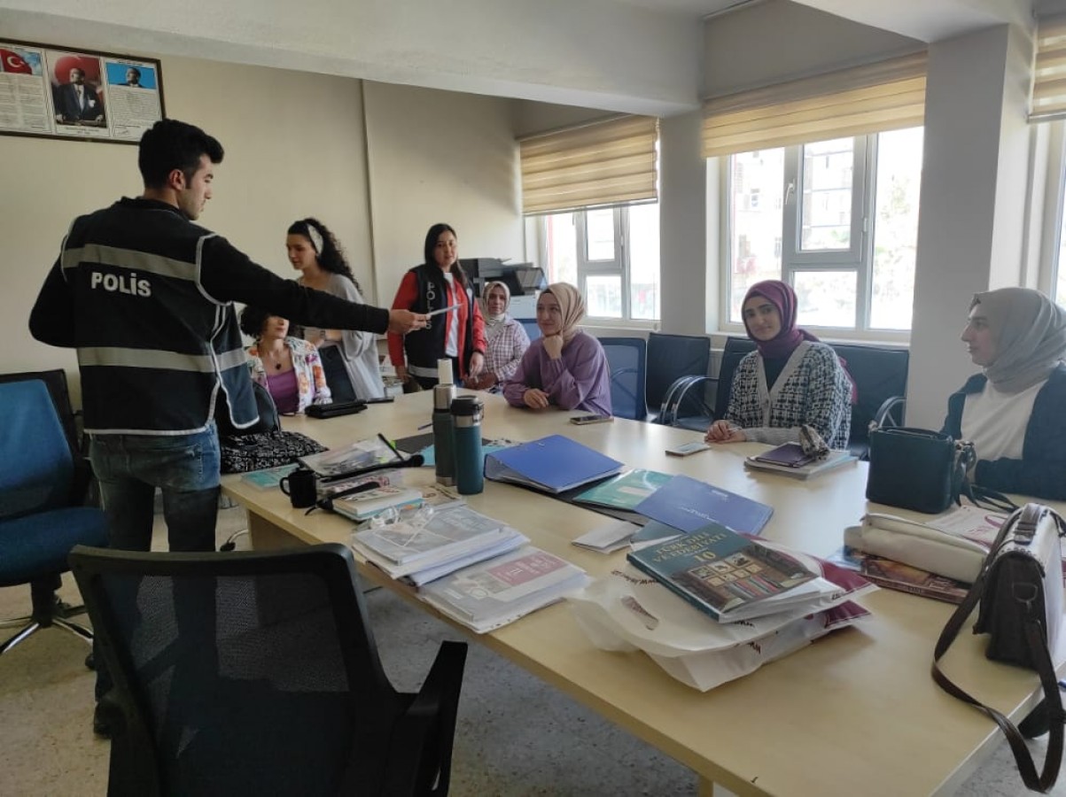 Destek Merkezi ve Hatice Kübra Kız Anadolu Lisesi ziyaret ederek, Kadın Acil Destek Uygulaması (KADES) hakkında eğitim semineri