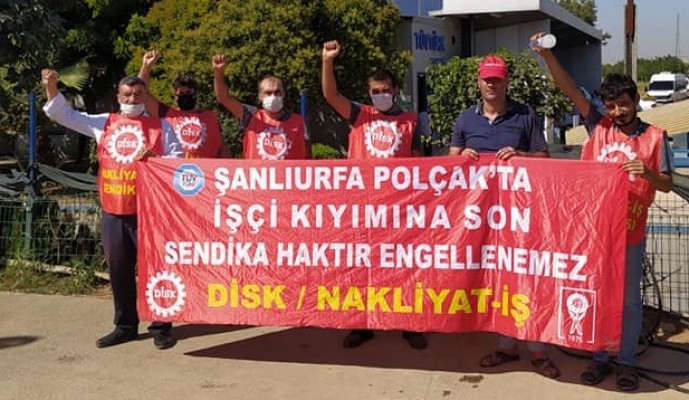 “ Şanlıurfa Polçak Taşıt Muayene İstasyonlarında örgütlenmiş, üye çoğunluğunu sağlamış ve 8 Kasım 2018 tarihinde Bakanlığa yetki tespiti için başvuruda bulunmuştu. Ancak işveren işçilerin anayasal hakkını hiçe sayarak işçi kıyımına başlamış, bu güne kadar 31 üyemizi haksız ve hukuksuz bir şekilde işten atmıştır. İşten atılan üyelerimiz 19 Kasım 2018 tarihinden beri işyerlerinin önünde 676 gündür işe geri dönüş mücadelesi vermektedirler.