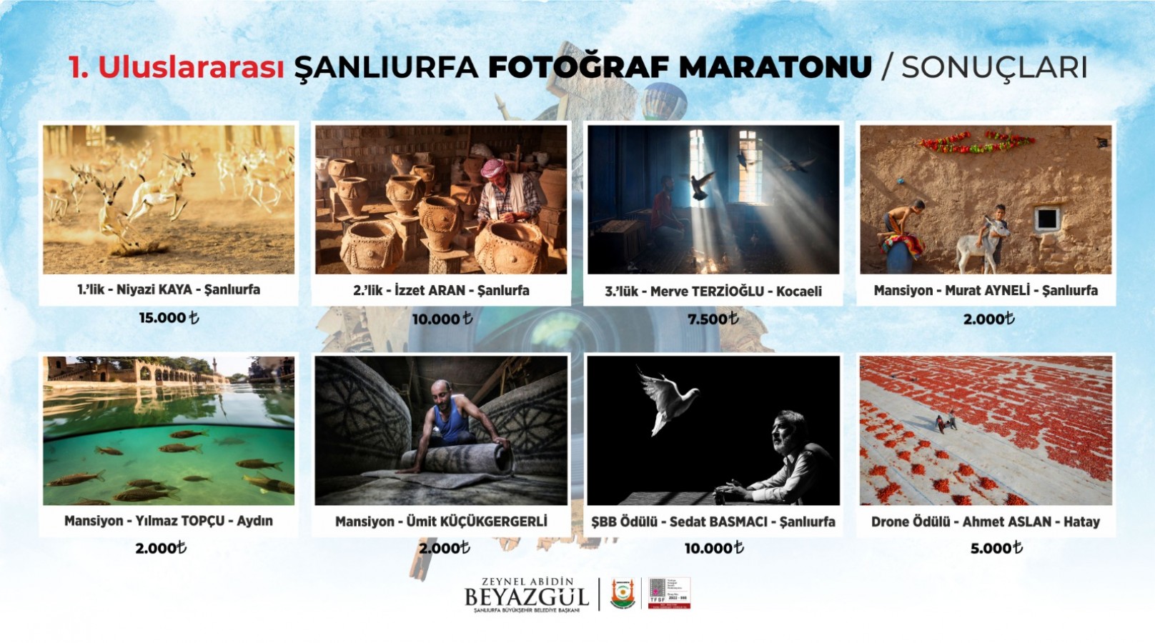 Yarışma kapsamında Şanlıurfalı fotoğraf sanatçısı Murat Ayneli, Aydın’dan yarışmaya katılan Yılmaz Topçu ve Ümit Küçük Gergerli Mansiyon ödülüne layık görülürken Sedat Basmacı Şanlıurfa Büyükşehir Belediyesi Özel Ödülü,  Hatay’dan gelerek yarışmaya katılan Ahmet Aslan ise Drone Özel Ödülünü almaya hak kazandı.