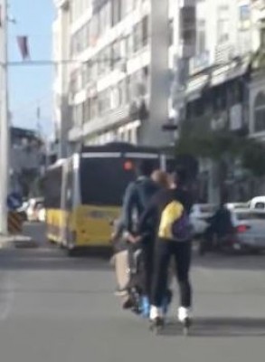 Amatör kameralar tarafından kayda alınan görüntüde, iki gencin paten ile yaptığı tehlikeli yolculuk görenleri şoke etti. İsmi öğrenilemeyen gençler, paten ile motosikletin arkasına tutunarak kilometrelerce ilerledi.