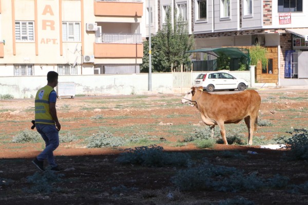 Kesim bölgelerine götürülen büyükbaş hayvanlar sahiplerine zor anlar yaşatırken, Karşıyaka ve Sancaktar mahallelerinde iki inek sahiplerinin ellerinden kaçtı.