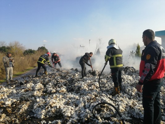 Olayda araçta maddi hasar oluşmazken, pamuğun bir kısmı yandı.
