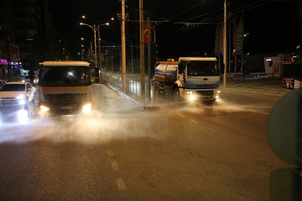Belediye Başkanı Mehmet Canpolat’ın talimatları doğrultusunda salgına karşı seferber olan ekipler, merkez ve kırsal mahallelerde dezenfekte çalışmalarını sürdürüyor. Ekipler bu kapsamda ilçe genelinde gece gündüz demeden cadde ve sokakların yıkama ve dezenfekte işlemlerini yapmaya devam ediyor.