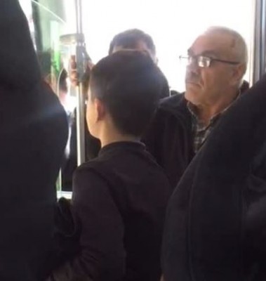 Daha sonra çocuğun kalkması üzerine küçük çocuğa "Aferin" diyen yaşlı adam, bu kez de "Sen kart bastın mı?" sorusunu yöneltti. Küçük çocuğa üst üste sorular soran yaşlı adam, şoföre seslenerek, "Aç kapıyı, insin bu" ifadelerini kullandı. Daha sonra yaşlı adam çocuğun inmesi için düğmeye basarken, otobüsteki yolcular, "Bırak, Suriyeli anlamıyor" yorumunda bulundu.