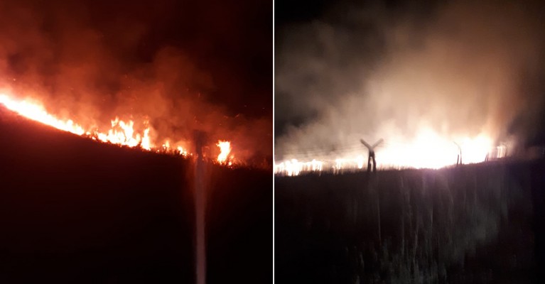 Sınır boyunca uzanan mayınlı arazide bilinmeyen bir nedenle çıkan yangını görenler, durumu itfaiye ekiplerine bildirdi.