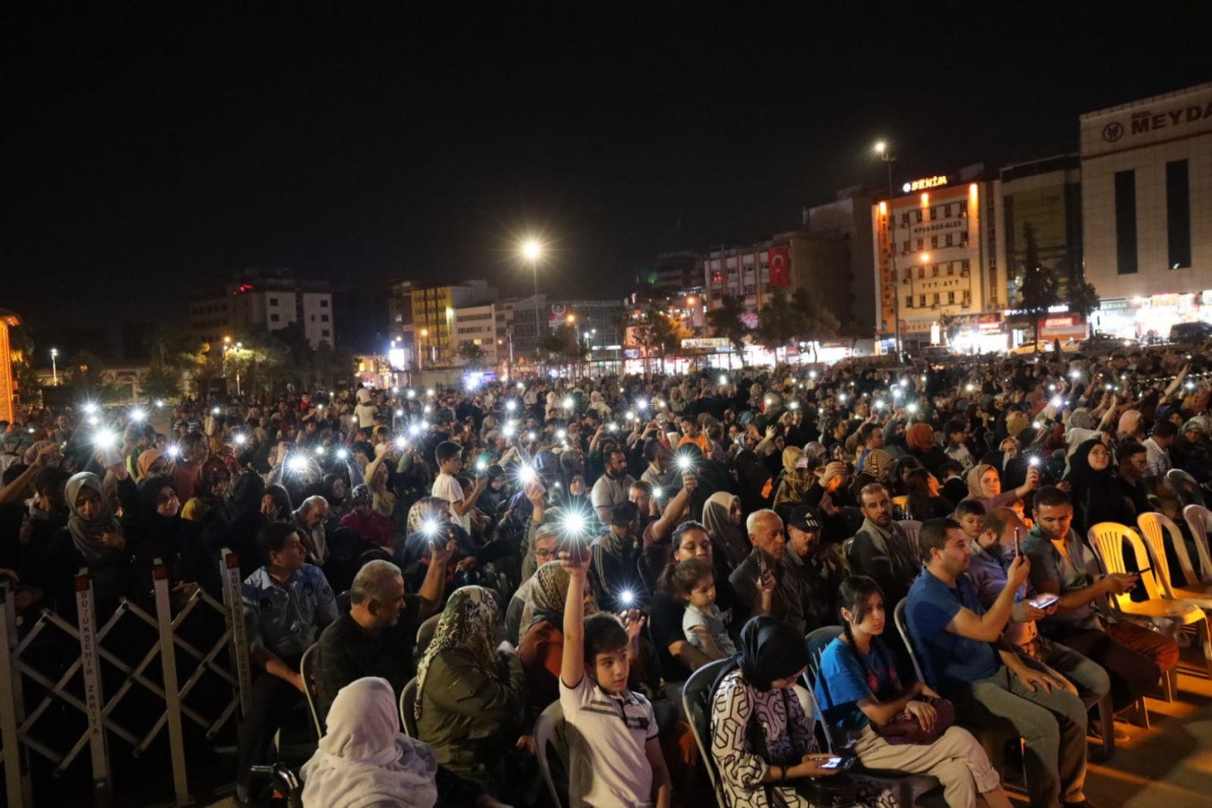 Rabia Meydanında düzenlenen geceye Şanlıurfa Büyükşehir Belediye Başkanı Zeynel Abidin Beyazgül, AK Parti Şanlıurfa Grup Başkanvekili Faruk Bayuk ve binlerce vatandaş katıldı.