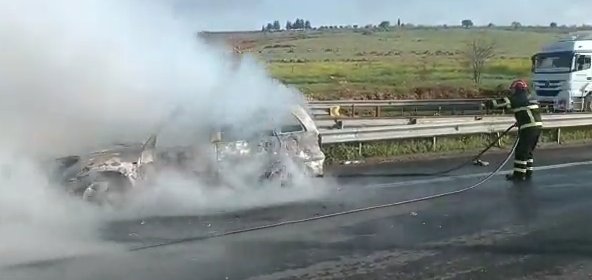 otobanında bir otomobil alev alarak yandı. Yangın itfaiye ekiplerinin müdahalesiyle