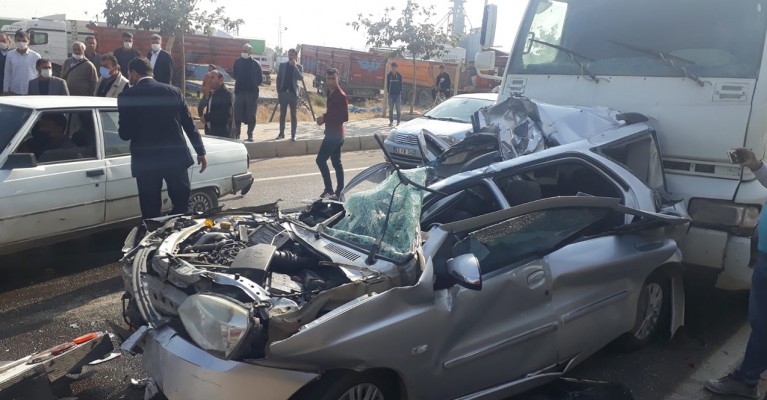 Akçakale karayolu üzerindeki kazada iddiaya göre; bir tır önündeki otomobile arkadan çarptı. Çarpmanın etkisiyle savrulan otomobil önünde tıra çarptı. Meydana gelen kazayı görenler yardıma koşarken, sağlık ve itfaiye ekiplerine haber verildi.