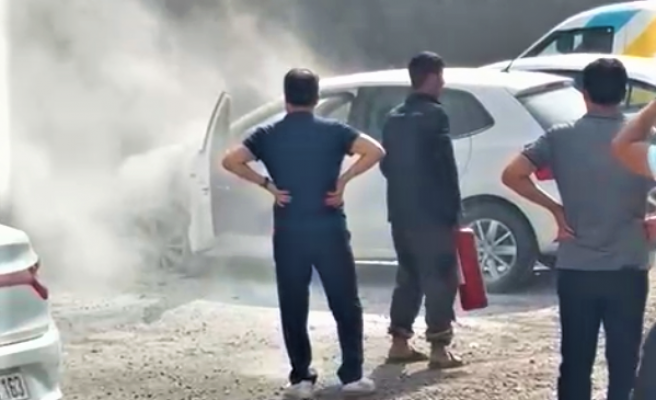bölümünde yangın çıktı. Araçtan dumanın yükseldiğini fark eden çevredekiler,