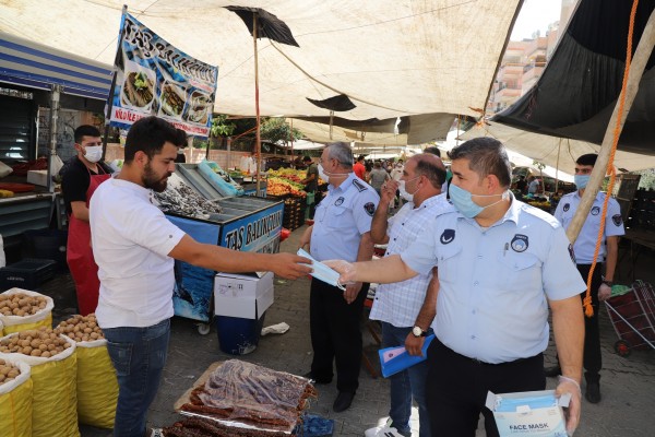 Pazardaki vatandaşlara maske dağıtan ve vatandaşların ateşini ölçen ekipler özellikle pazarda satış yapan esnafa kurallara uymaları, hijyene dikkat etmeleri konusunda da uyarı yaptı.