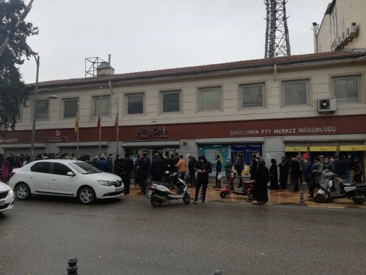 Çin'in Vuhan kentinde ortaya çıkan koronavirüs tehlikesi devam ederken, Şanlıurfa’nın farklı noktalarında bulunan PTT şubelerinde sıra bekleyen vatandaşların oluşturduğu kalabalığa hala bir çözüm bulunamadı.