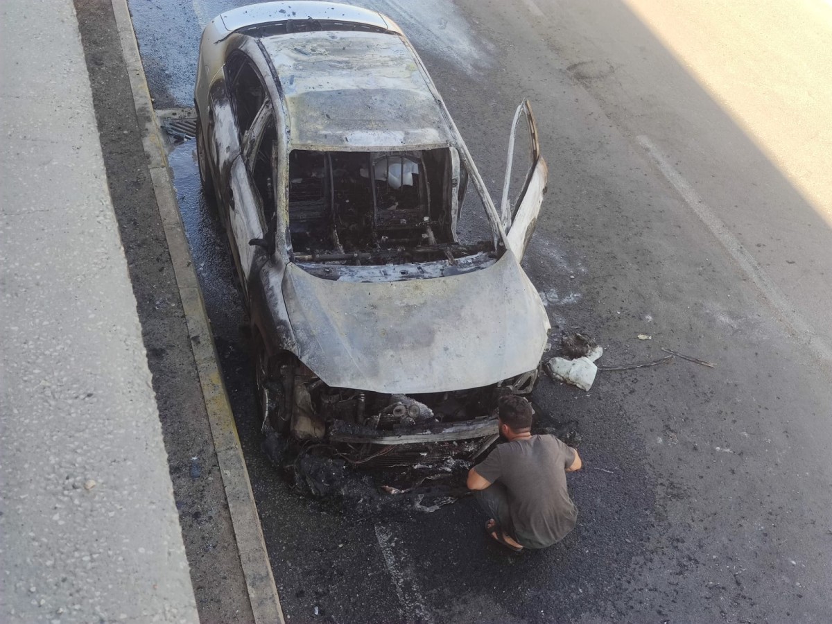İddiaya göre, 63 AEK 527 plakalı otomobil henüz bilinmeyen bir sebeple cayır cayır yanmaya başladı.