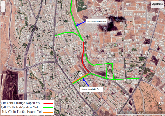 Şanlıurfa Büyükşehir Belediyesi tarafından Abdulkadir Badıllı Bulvarı, Kazım Karabekir Caddesi ile Eyyüpoğlu Caddesinin kesişim noktasında devam eden doğalgaz deplase ve yol çalışmaları nedeniyle 08 Ağustos saat 07:00 ile 09 Ağustos saat 24:00 tarihleri arasında araç trafiğine geçici olarak kapatılacağı duyuruldu.