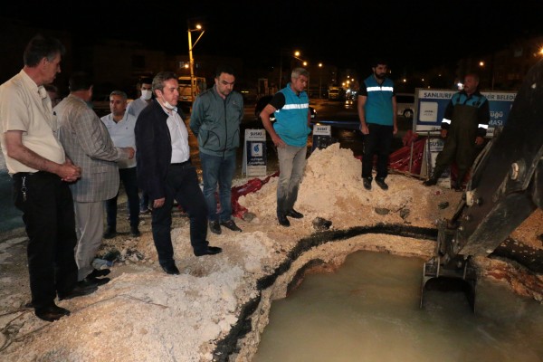 Devteşti Mahallesi Açıksu Caddesi üzerinde bulunan Kına isale hattında meydana gelen ani su arızasını çözmek için gece başlayan çalışmaları bizzat yerinde personeller ile birlikte çalışmayı başta ŞUSKİ Genel Müdürü Muhammed Said Güllüoğlu, Genel Müdür yardımcısı Mehmet Uslu ve ilgili daire başkanlıkları ve teknik ekip takip etti.