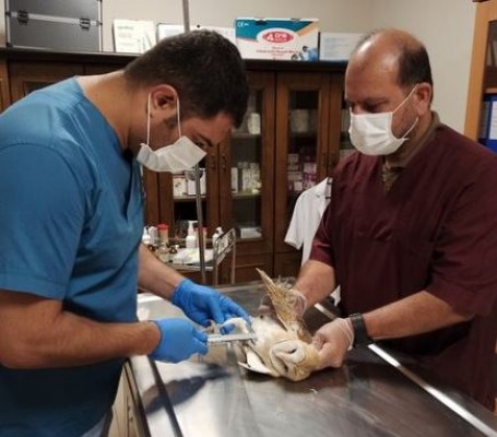 Yaralı halde bulunan peçeli baykuş, tedavi için Şanlıurfa Doğa Koruma ve Milli Parklar Müdürlüğü'ne bağlı Gölpınar Yaban Hayvanı Kurtarma ve Rehabilitasyon Merkezine götürüldü.