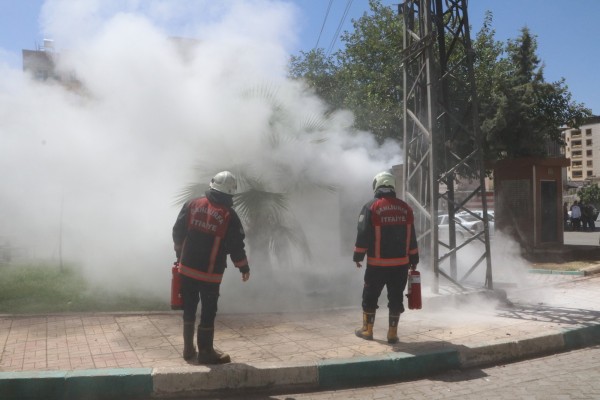 Şanlıurfa'nın Haliliye ilçesinde bir elektrik trafosu yandı.