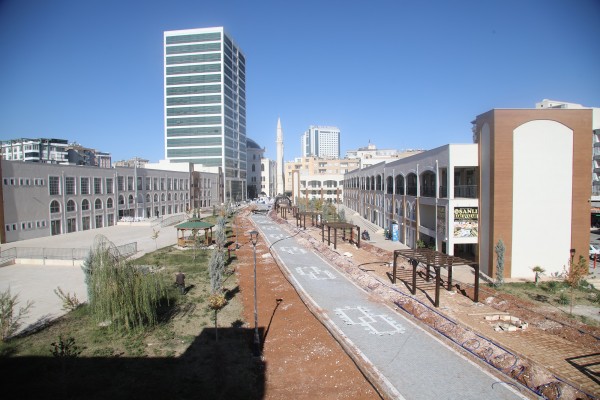 Şanlıurfa’da yeni projeler hayata geçiren Büyükşehir Belediyesi, 'İlk Toplanma Merkezi' olarak bilinen Eski Hal Pazarı kavşağında yapımı tamamlanan TOKİ'ye ait iş merkezi bahçesinde uygulanan kentin en uzun 'Yeşil Koridor Projesini tamamlamak üzere.