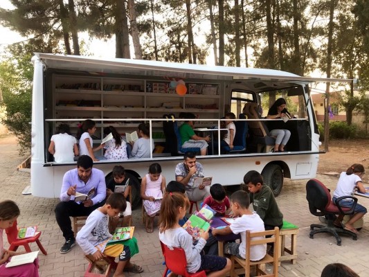 ‘Eşekli Kütüphaneci’ olarak bilenen Mustafa Güzelgöz’ün hikayesinden ilham alarak 2019 yılında bir gezici kütüphane oluşturan öğretmen Nusrettin Biçer ve Abdülkadir Korkmaz, ‘Okumak Yolda Olmaktır’ projesiyle Şanlıurfa’nın köylerini ziyaret ederek çocuklarla bir araya geliyor. İkinci el bir minibüsü gezici bir kütüphaneye dönüştürerek Suruç’ta gezilmemiş köy ve ulaşılmamış çocuk bırakmamayı hedefleyen proje; çocukları sadece kitapla değil, kendilerinin tasarladıkları kukla, bilim ve sanat atölyesi gibi etkinliklerle de buluşturuyor. Eğitime eşit erişim herkesin hakkı diyerek yolan çıkan bu ikiöğretmen, ‘Okumak Yolda Olmaktır’ projesiyle birçokçocuğa ulaşmaya devam ediyor.