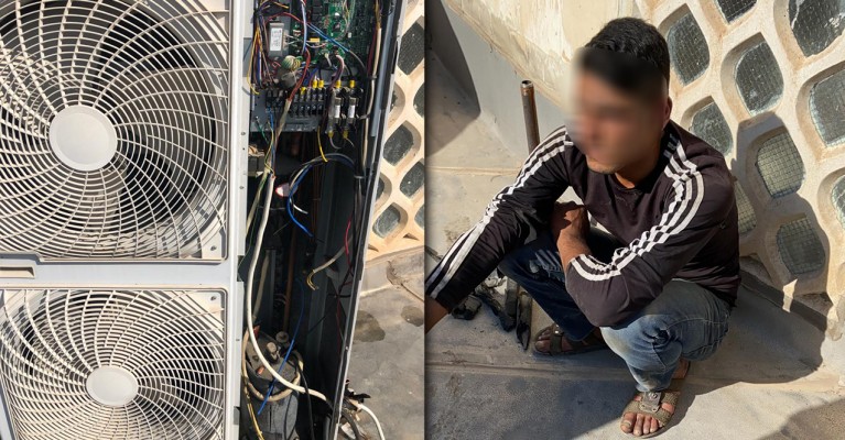 Çatıya çıkan tamirciler, bir kişinin klima motorlarını sökmeye çalıştığını gördü. Hemen müdahale eden tamirciler, şahsı suçüstü yakaladı.
