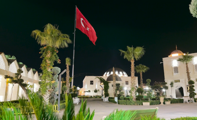 Urfa’daki camiye dev Türk bayrağı asıldı