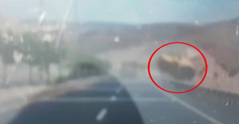 Devrilen biçerdöverin arkasından gelen bir araçtaki kamera ile çekilen görüntülerde, aracın devrilme anı görülüyor.