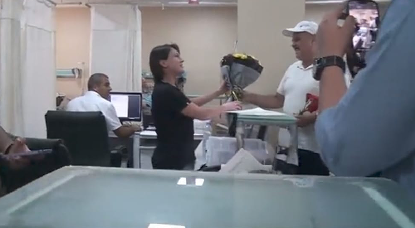 Şanlıurfa’da Mehmet Akif İnan Eğitim ve Araştırma Hastanesi’ne baş ağrısı şikayetiyle müracat eden Cengiz Bicek isimli bir vatandaş, hastalığıyla ilgili doğru teşhisi koyup başarılı bir ameliyat yapan hastane doktoru Fatma Özdurmuşoğlu ve ekibine teşekkür etmek üzere çiçek verdi.