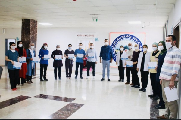 Şanlıurfa Balıklıgöl Devlet Hastenesi Başhekimi Eyyüp Şelli, pandemi sürecinde ailelerinden ve sevdiklerinden uzak kalarak görevlerini sürdüren hastane sağlık çalışanına teşekkür belgesi verdi.
