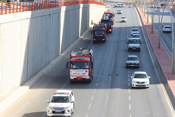 Her zaman insanların yardımına koşan, can ve mallarını korumak için kendi canlarını tehlikeye atan itfaiyeciler, Şanlıurfa'da İtfaiye Haftası münasebetiyle kentte tur düzenledi.