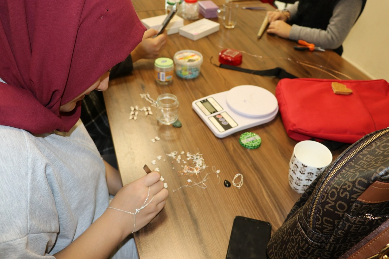 Telkâri eğitmeni Kevser Kaplan, kursta kadınlara telkâri eğitimi verdiklerini ve el becerileriyle kadınların kendi tasarımlarını ürettiklerini belirti.